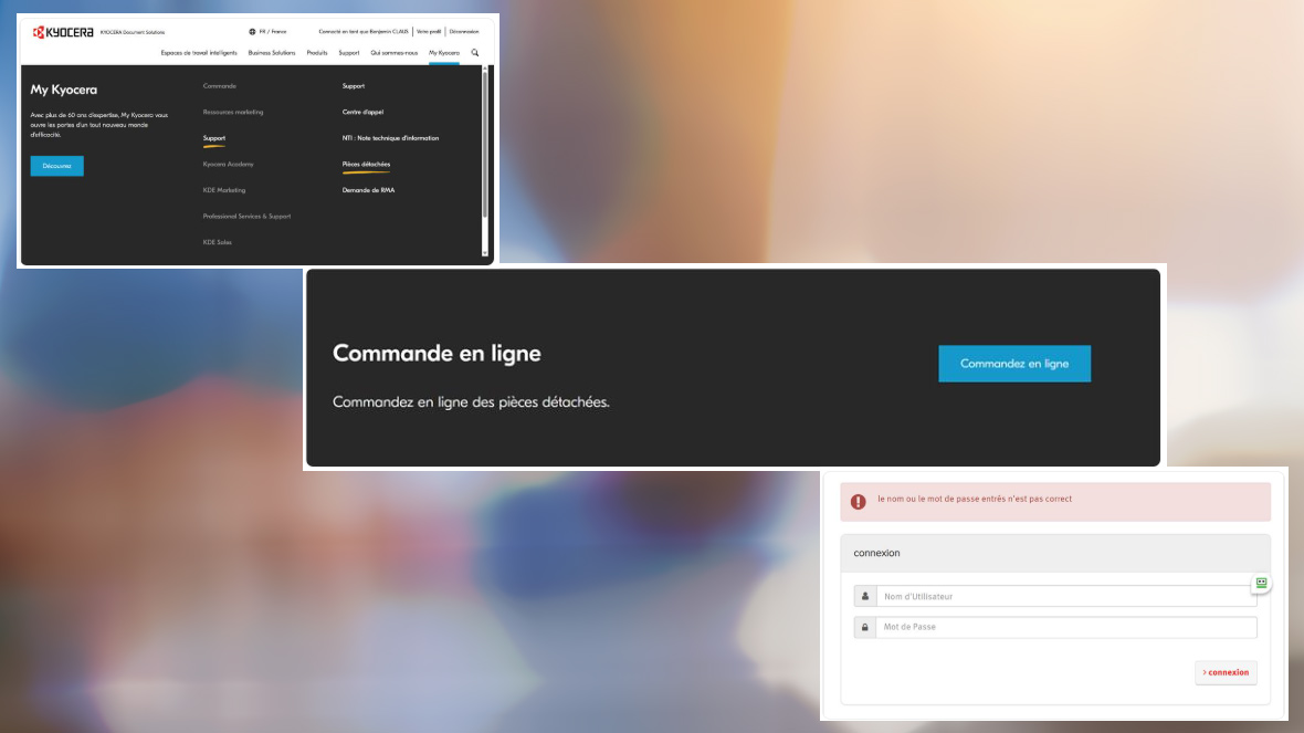 Toutefois, l’application Web Order Entry (WOE), dédiée aux commandes de pièces détachées en ligne, est désormais accessible via une nouvelle adresse : https://apps.kyoceradocumentsolutions.fr/woe/login.html