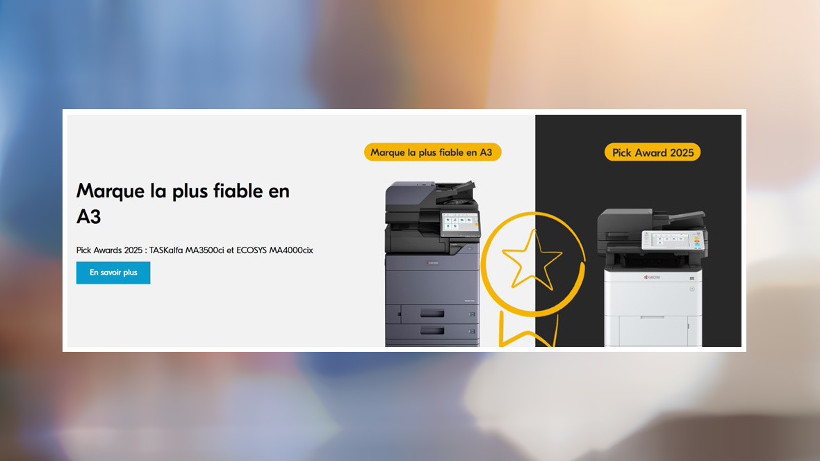Vous l'avez peut-être vu passer sur les réseaux sociaux, nous avons reçu 2 nouvelles récompenses de la part du cabinet d'études Keypoint Intelligence (BLI) dont celui de la marque la plus fiable en A3 2025-2027, à l'issue de cinq années de tests rigoureux portant sur l'ensemble de notre gamme A3, ainsi que deux Pick Awards 2025 pour le TASKalfa MA3500ci et l'ECOSYS MA4000cix.