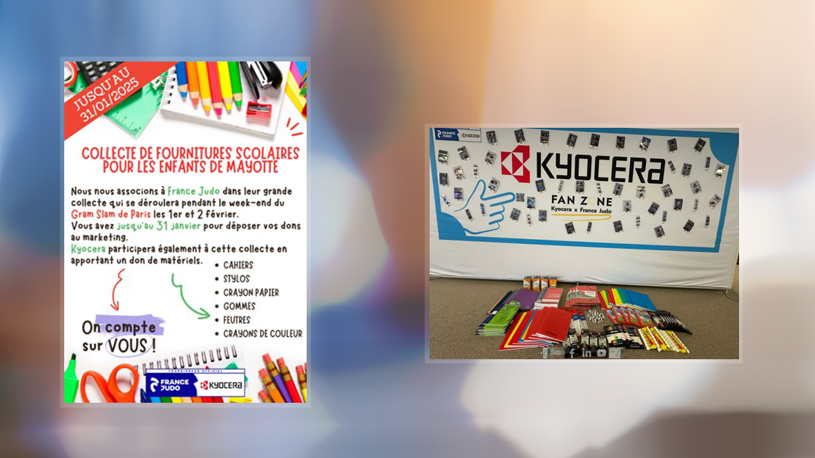 En tant que Fournisseur Officiel de France Judo et car faire ce qui est juste en tant qu’être humain est dans l’ADN de Kyocera, nous avons décidé de participer à la collecte de fournitures scolaires organisée par France Judo pour les enfants de Mayotte.