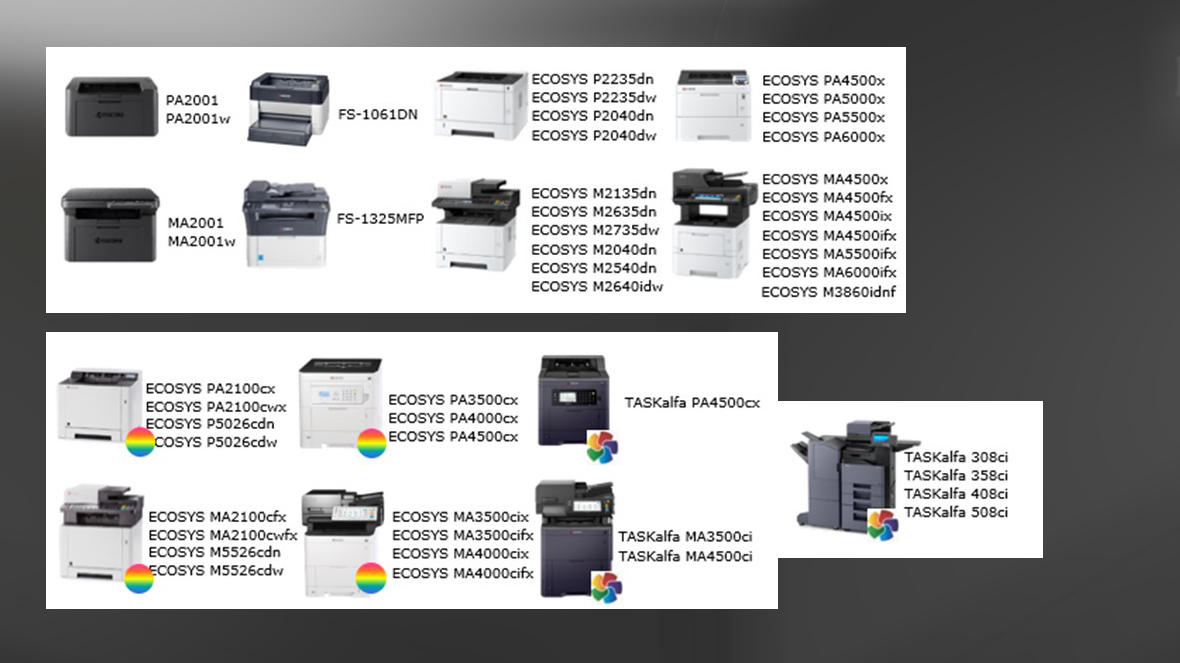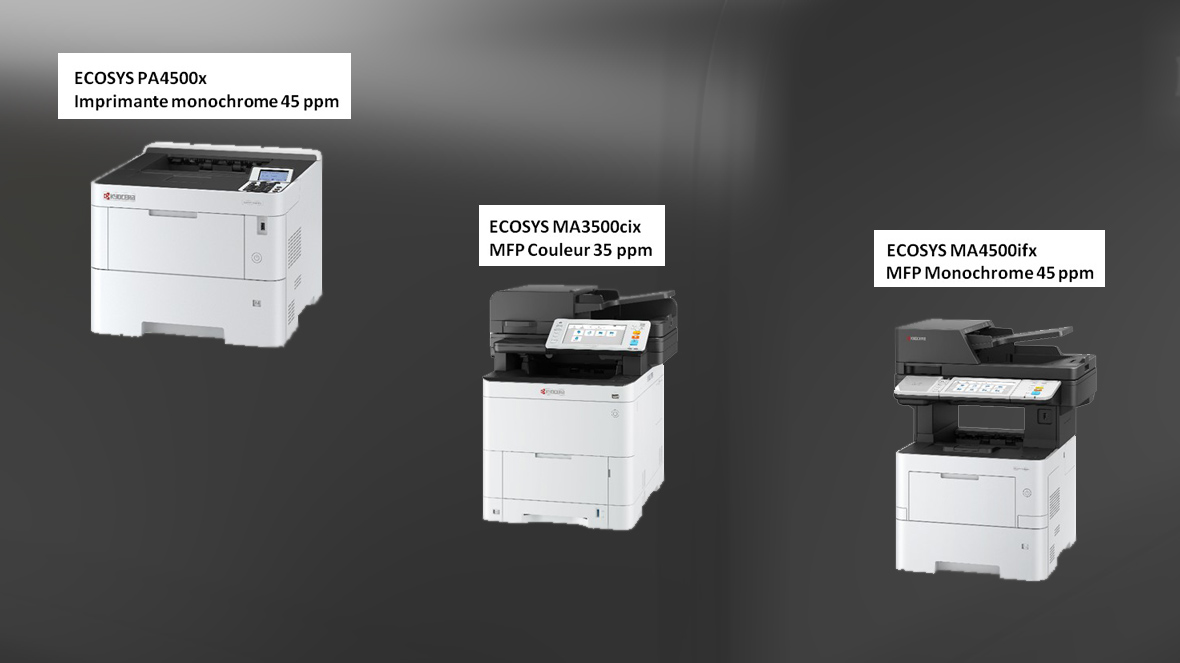 Vous trouverez ci-dessous l’ensemble de la gamme d’imprimantes et multifonctions A4 de Kyocera.
