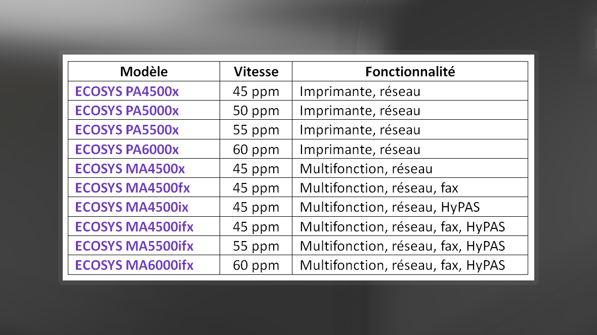 Cette gamme est dotée de la technologie ECOSYS signifiant ECOlogie,