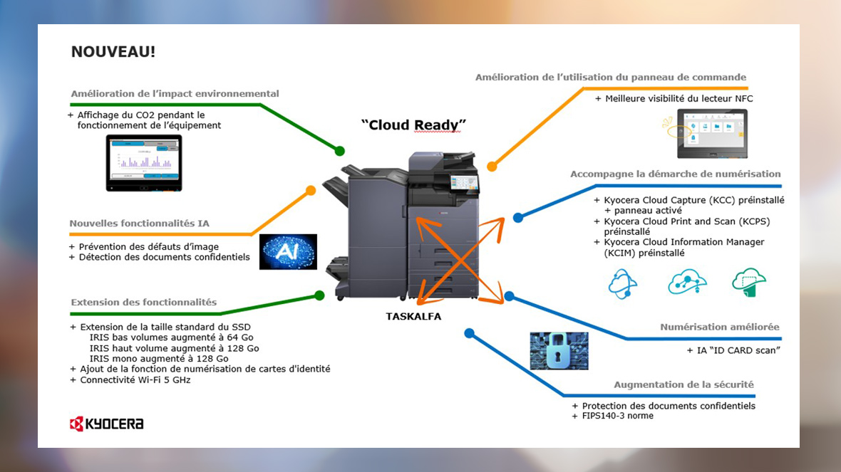 Nous avons le plaisir de vous annoncer le lancement officiel de la nouvelle génération de multifonctions TASKalfa de la gamme A3. Fidèles à notre engagement en matière d’innovation, de fiabilité et de performance, la gamme TASKalfa MZ2501ci/MZ5001i accompagne votre transition vers un environnement numérique fluide et sécurisé.