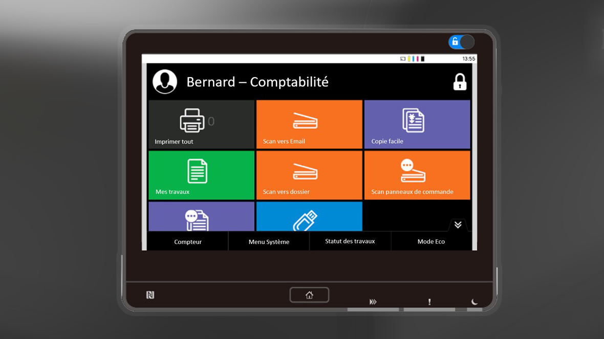 Ce logiciel multimarque permet de suivre l’utilisation du parc d’impression afin d’optimiser les coûts. Par exemple, grâce à MyQX, les utilisateurs peuvent se voir attribuer des politiques d’impression (limité à des impressions/copies noir et blanc par exemple) et des quotas (nombre d’impressions et copies par utilisateur ou groupe d’utilisateur). MyQ X 8.2 est une version qui répond aux défis modernes du télétravail, ainsi qu'à la demande croissante de fonctionnement sans contact avec les multifonctions et à l'égalité des chances pour les personnes handicapées.