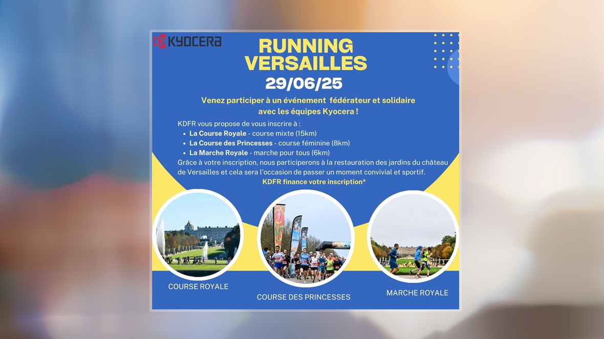 N’hésitez pas à nous rejoindre pour partager un moment convivial et solidaire. Kyocera finance votre inscription ainsi qu’un t-shirt aux couleurs de Kyocera (hors frais de déplacement, hébergement éventuel, frais personnels).