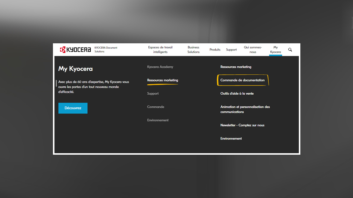Commandez des brochures sur notre gamme A3 en toute autonomie depuis notre site My Kyocera dans la rubrique ressources marketing > Commande de documentation.