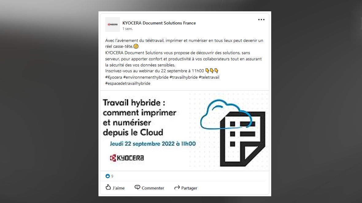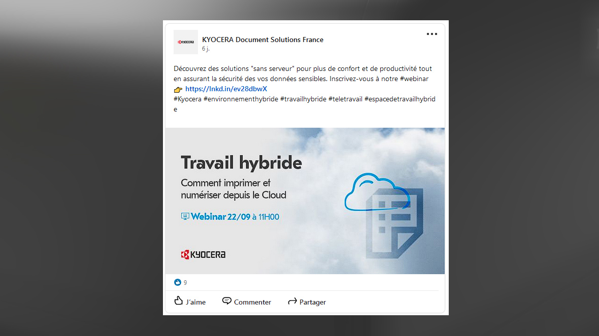 Kyocera. Invitez-les à notre prochain webinar du 20 septembre à 11h00.