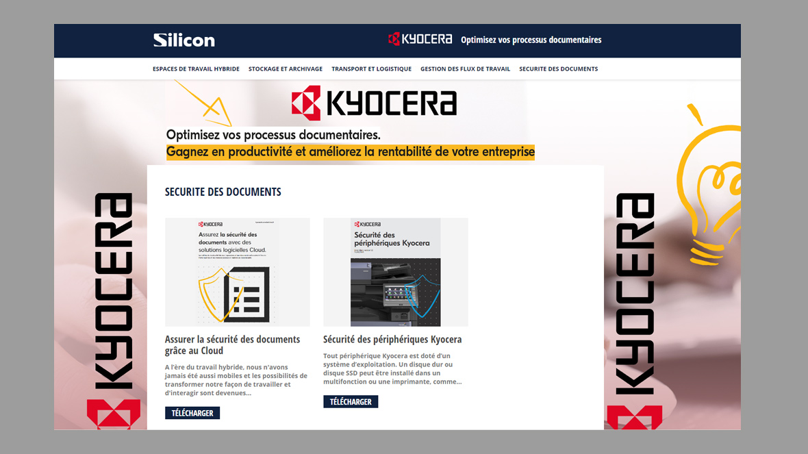 Kyocera s’exprime sur sa zone dédiée sur Silicon.fr avec une belle visibilité autour de nos solutions logicielles Cloud, nos solutions liées à la sécurité documentaire, à la gestion des flux, ou encore à nos solutions dédiées pour les espaces de travail hybride.